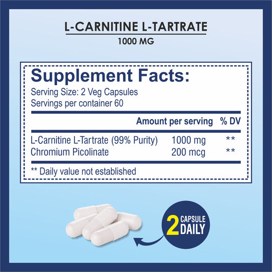 Brexhealth L-Carnitine L-Tartrate 1000mg Pre Workout Supplement | for Men & Women - 120 Vegetarian Capsules