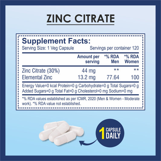 Brexhealth Zinc Citrate Supplements | Supports Healthy Immune System - 120 Veg Capsules