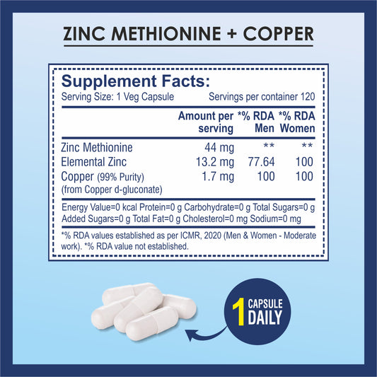 Brexhealth Zinc Methionine Plus Chelated Copper | Antioxidant Supplement | Supports Immune Health - 120 Veg Capsules