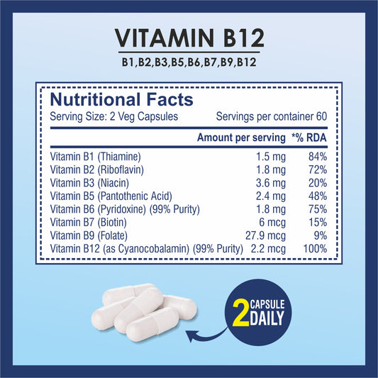 Brexhealth Plant Based Vitamin B12 Supplement | With B1, B2, B3, B5, B6, B7, B9, Moringa | For Digestion And Nerve Health | Hair & Skin Health | For Men & Women - 120 Vegetarian Capsules