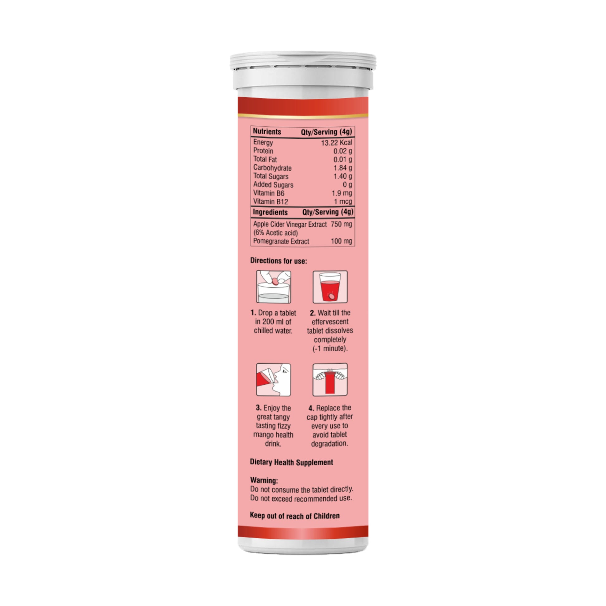 - Each tablet is carefully formulated to deliver the natural goodness of apple cider vinegar without the strong taste and odor that often accompanies liquid vinegar. Bursting with effervescence, these tablets dissolve in water to create a tangy and invigorating drink that can easily be enjoyed on the go or at home.