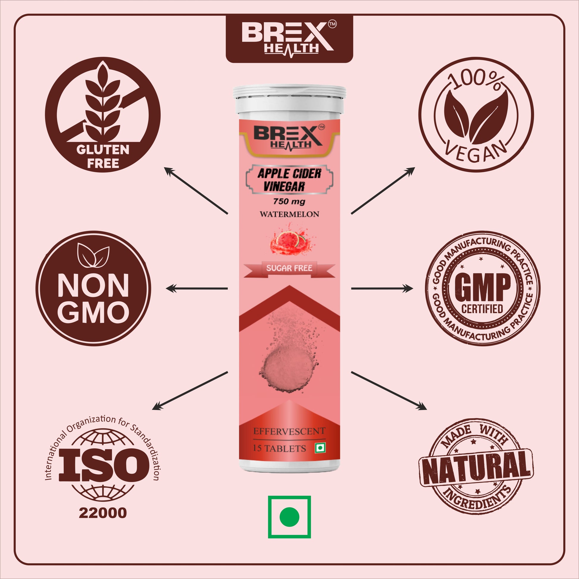 - Introducing Brexhealth Apple Cider Vinegar Effervescent Tablets – a convenient and refreshing way to incorporate the numerous benefits of apple cider vinegar into your daily routine. Crafted with care, these tablets provide all the goodness of traditional apple cider vinegar in a fizzy and delightful format.